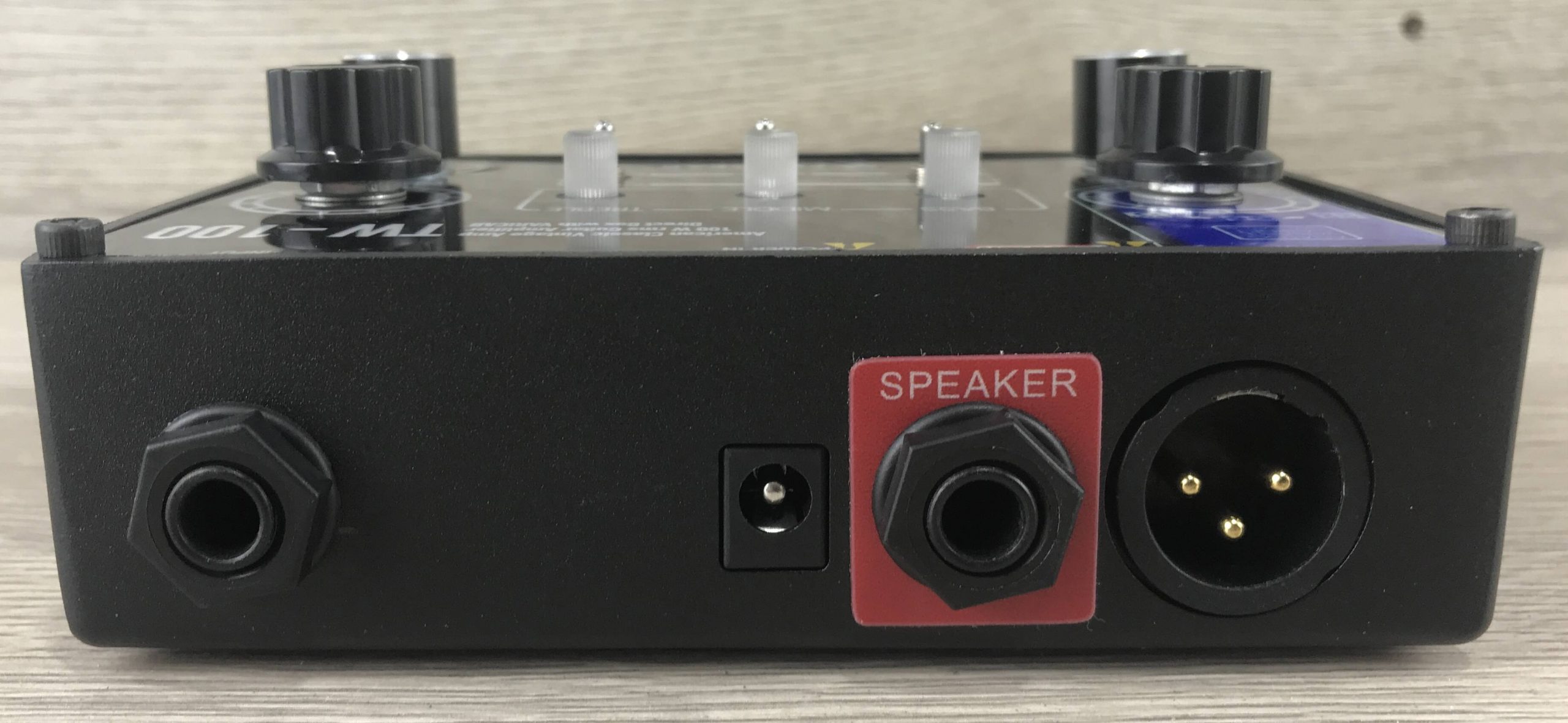 Ispirato ai Fender anni ’60/’70 ,il Foxgear TW-100 è un amplificatore per chitarra elettrica a pedale offre 100W su 8Ω con voicing pulito in stile americano. Ha un equalizzatore a 3 bande, controlli per XLR Level, simulazione di cabinet variabile, e uscite per cuffie e DI bilanciata. Include interruttori Ground Lift e Standby, ed è alimentato da un alimentatore da 30V/4A