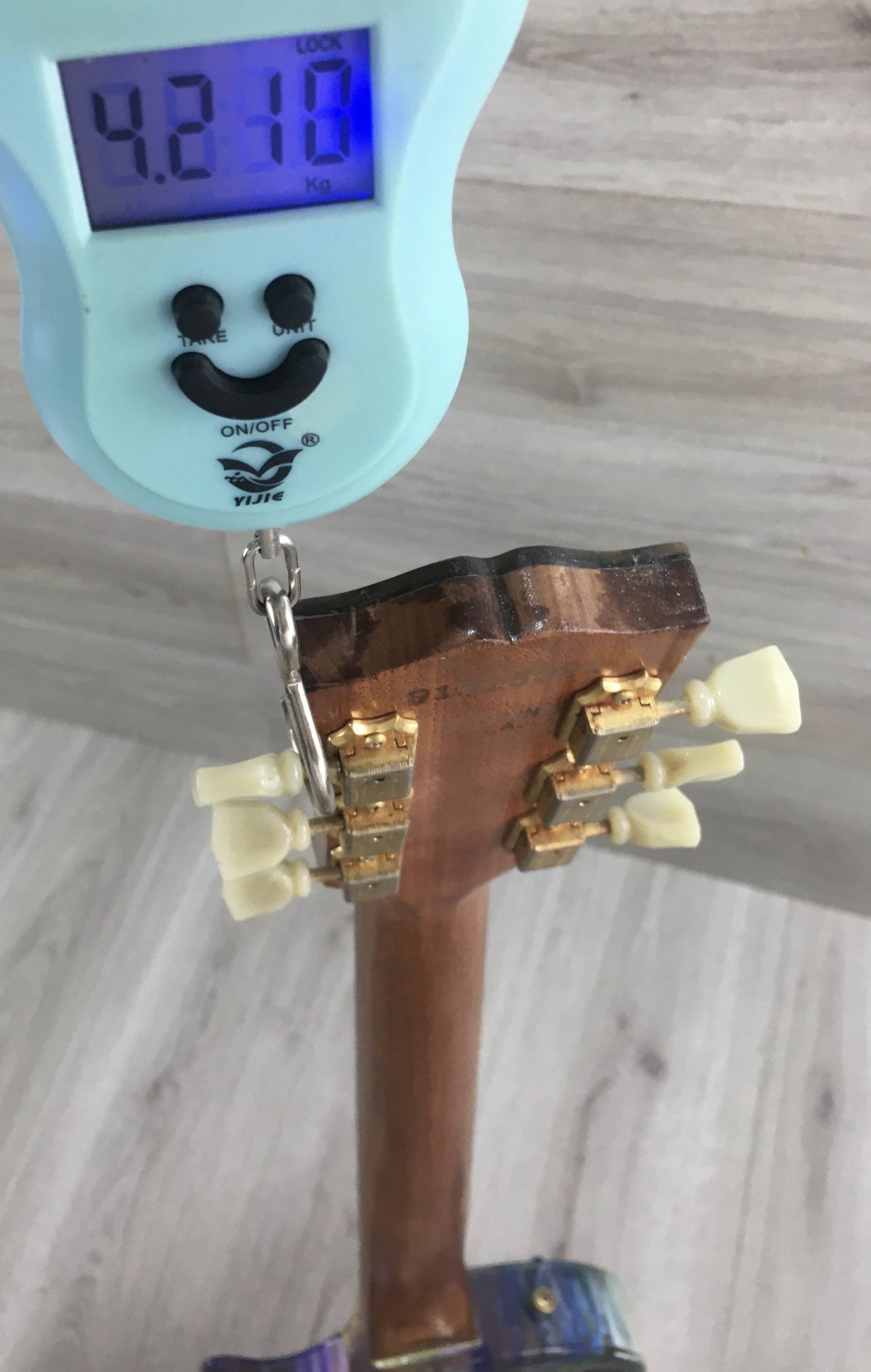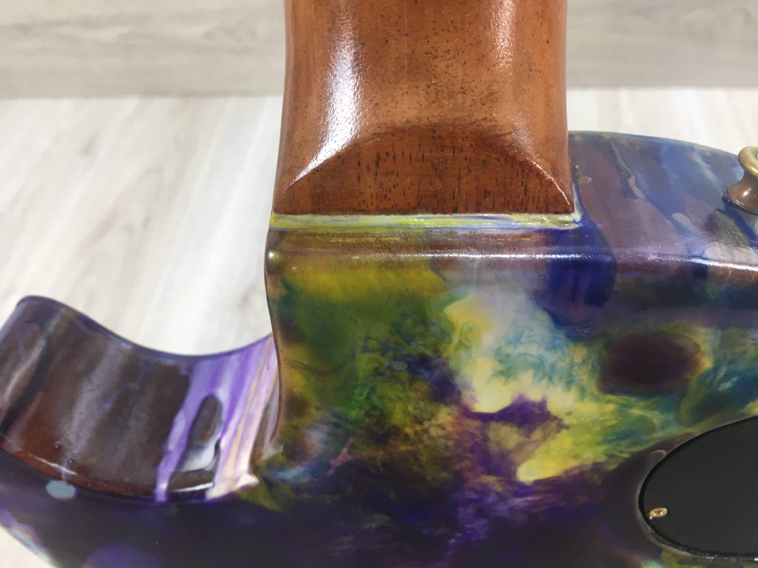 Condizioni estetiche: lo strumento è stato sverniciato e ricoperto da resina epossidica come mostrato in foto