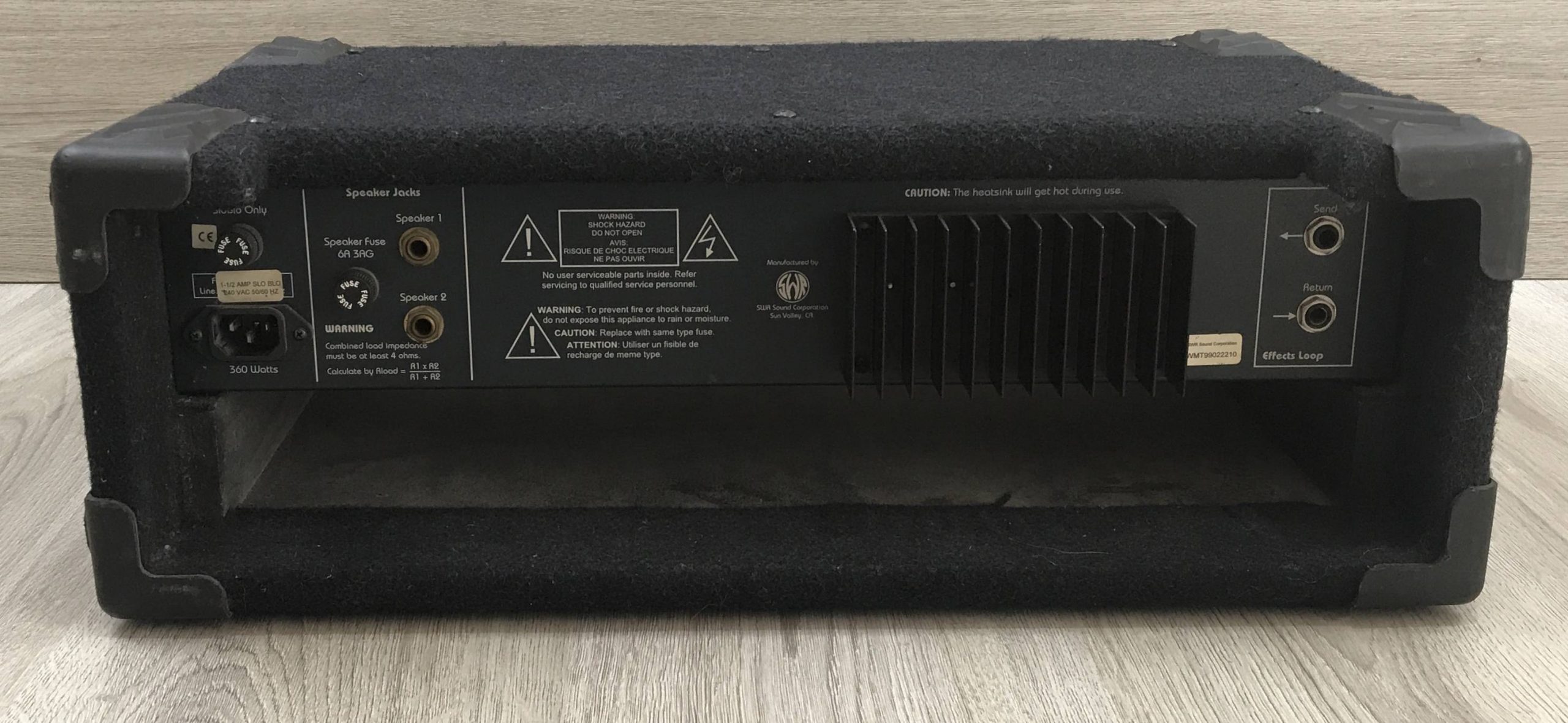 La SWR Workingman’s 2004 è una potente testata per basso da 200 W a 4 ohm, solida e versatile, con EQ attivo, Aural Enhancer e limiter integrato. Offre uscita bilanciata XLR, loop effetti, e uscita cuffie, ideale per live o studio. Costruzione robusta in rack rivestito di moquette blu. Suono pulito e definito, ma non caldo come un valvolare.