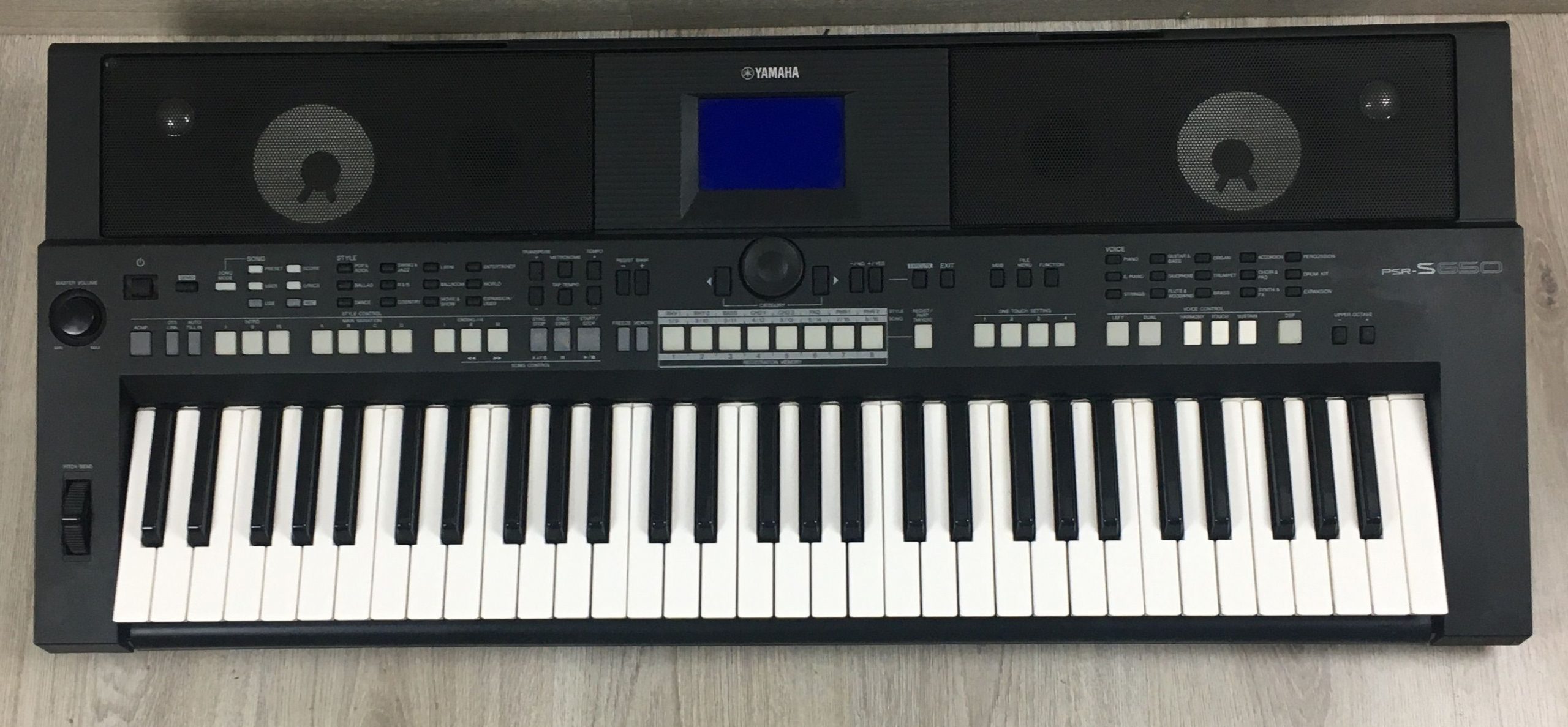 La Yamaha PSR S-650 è una Tastiera arranger 61 tasti che una una grandissima varietà di suoni e stili incredibilmente realistici derivanti dalla tecnologia Megavoice di Tyros. grazie a questo sistema venfono riprodotti tutte le sfumature caratteristiche dello strumento come ad esempio il rumore delle corde per una chitarra acustica. Con la memoria interna è possibile memorizzare nuovi suoni che non andranno persi alla riacensione del dispositivo
